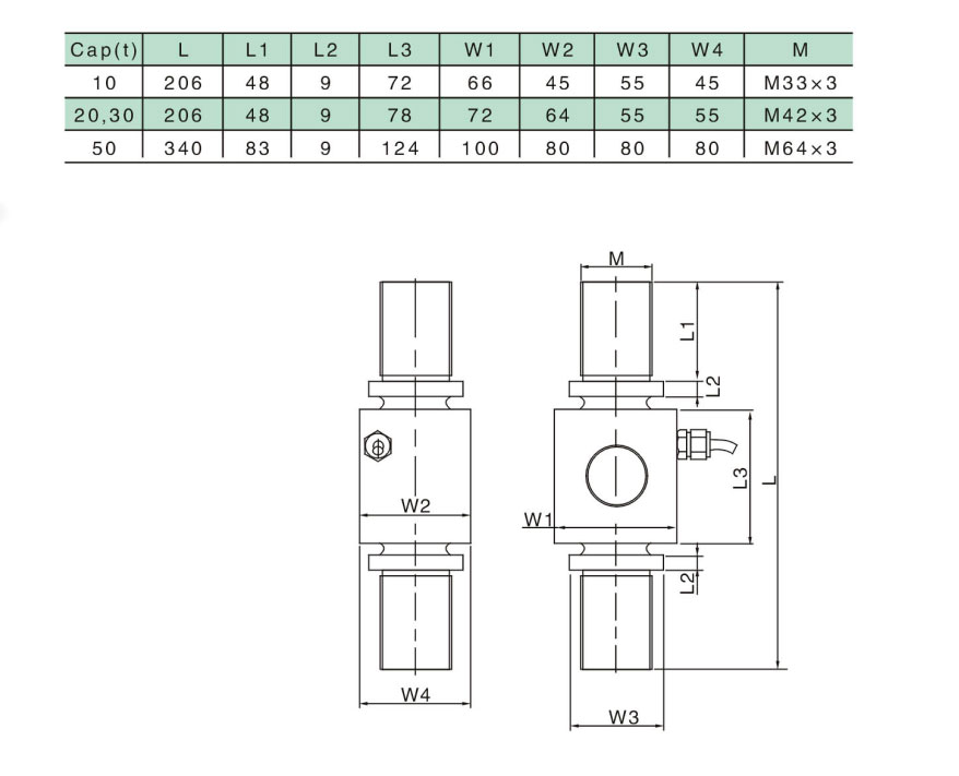 此系列稱重傳感器是用于吊鉤秤的專用傳感器,彈性體采用合金鋼材料制作,具有精度高,安裝方便,抗偏載能力強(qiáng),抗沖擊性能好等優(yōu)點(diǎn),經(jīng)過良好的防潮密封,適用各種吊秤適用。